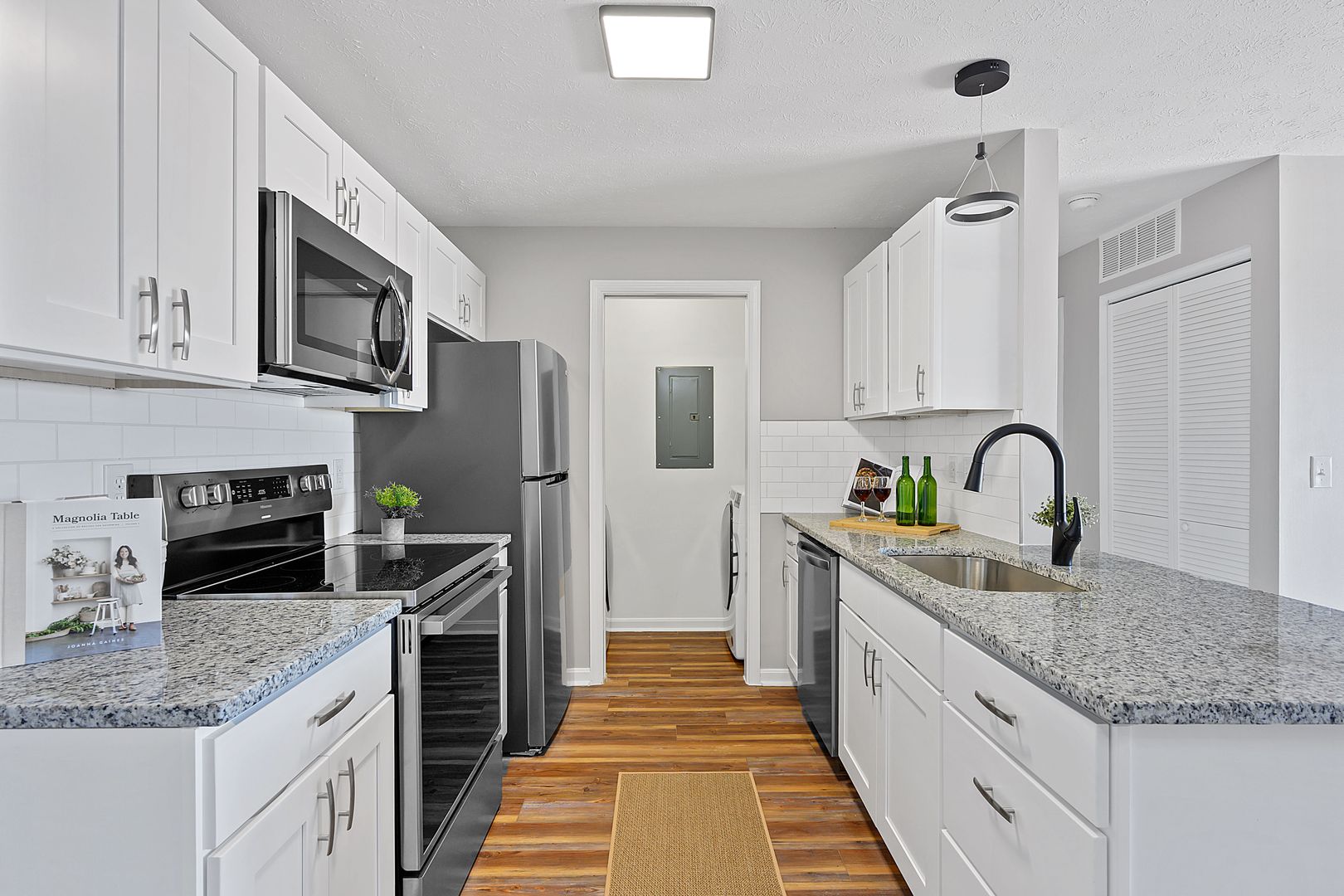 Experience comfort, convenience, and modern living in our beautifully renovated apartment community. Our spacious floor plans feature updated kitchens with sleek granite countertops and stainless steel appliances, plus the convenience of in-unit washer and dryer hookups— with select homes including a full-size washer and dryer.